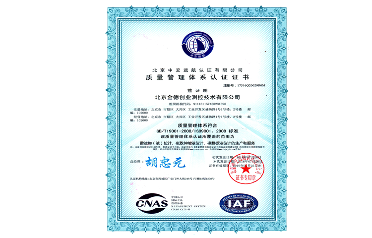 質(zhì)量管理體系認證證書ISO9000